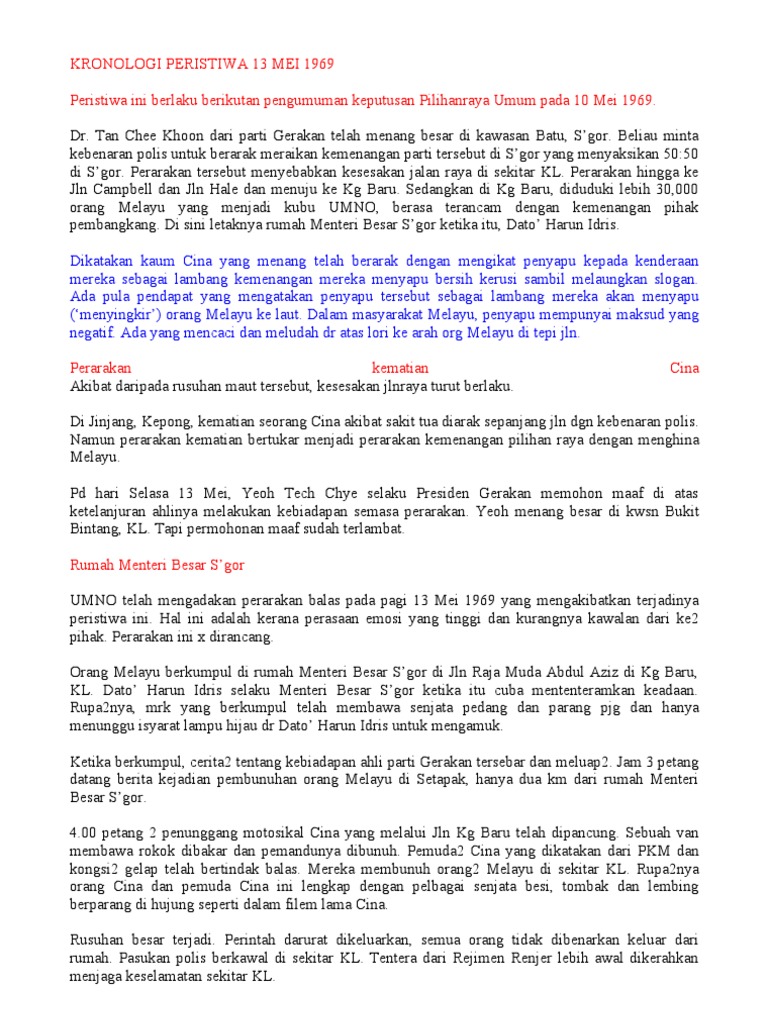 Pada 13 mei 1969 keharmonisan dari percampuran para kaum multi kultur dan ras di malaysia mengalami gangguan sehingga menjadi satu sejarah tema utama pemilu yang menjadi bagian dari sejarah peristiwa 13 mei 1969 adalah isu mengenai golongan dan ras yang menyentuh emosi dan. Kisah parang terbang sungai manik | perak laporan mageran.13 mei 1969 peristiwa 13 mei : Tragedi ini telah meragut nyawa serta harta benda dan mempunyai kaitan yang rapat dengan pilihan raya umum 10 mei 1969 merupakan satu titik hitam dalam sejarah negara. Sebab terjadinya peristiwa 13 mei 1969 adalah perarakan kemenangan pihak pembangkang. Sumber rujukan di description #sejarahmalaysia